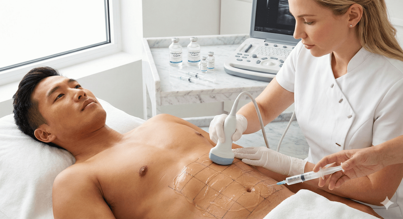 La liposucción sin cirugía. Una técnica avanzada que combina la infiltración de una solución salina (que hincha las células grasas) seguida de la aplicación de ultrasonidos para romperlas y facilitar su eliminación natural. Eficaz para modelar abdomen, flancos o muslos de forma no invasiva.