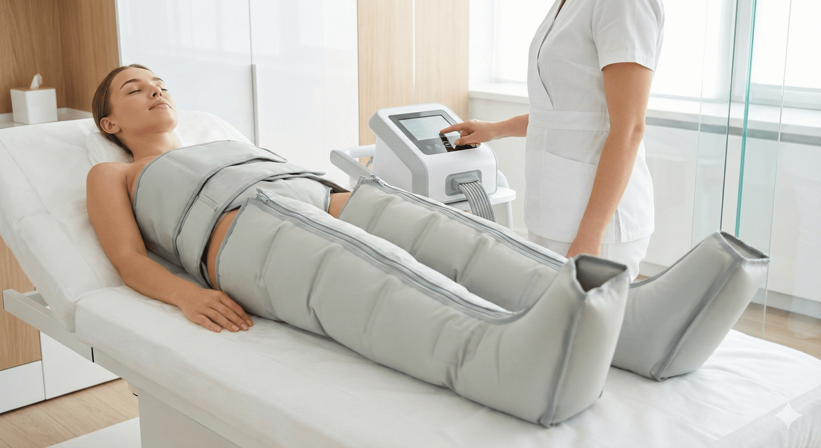 Piernas ligeras y bienestar total. Un drenaje neumático que alivia la retención de líquidos, mejora la circulación y desintoxica el sistema linfático. El broche de oro perfecto para finalizar tus sesiones de remodelación corporal.